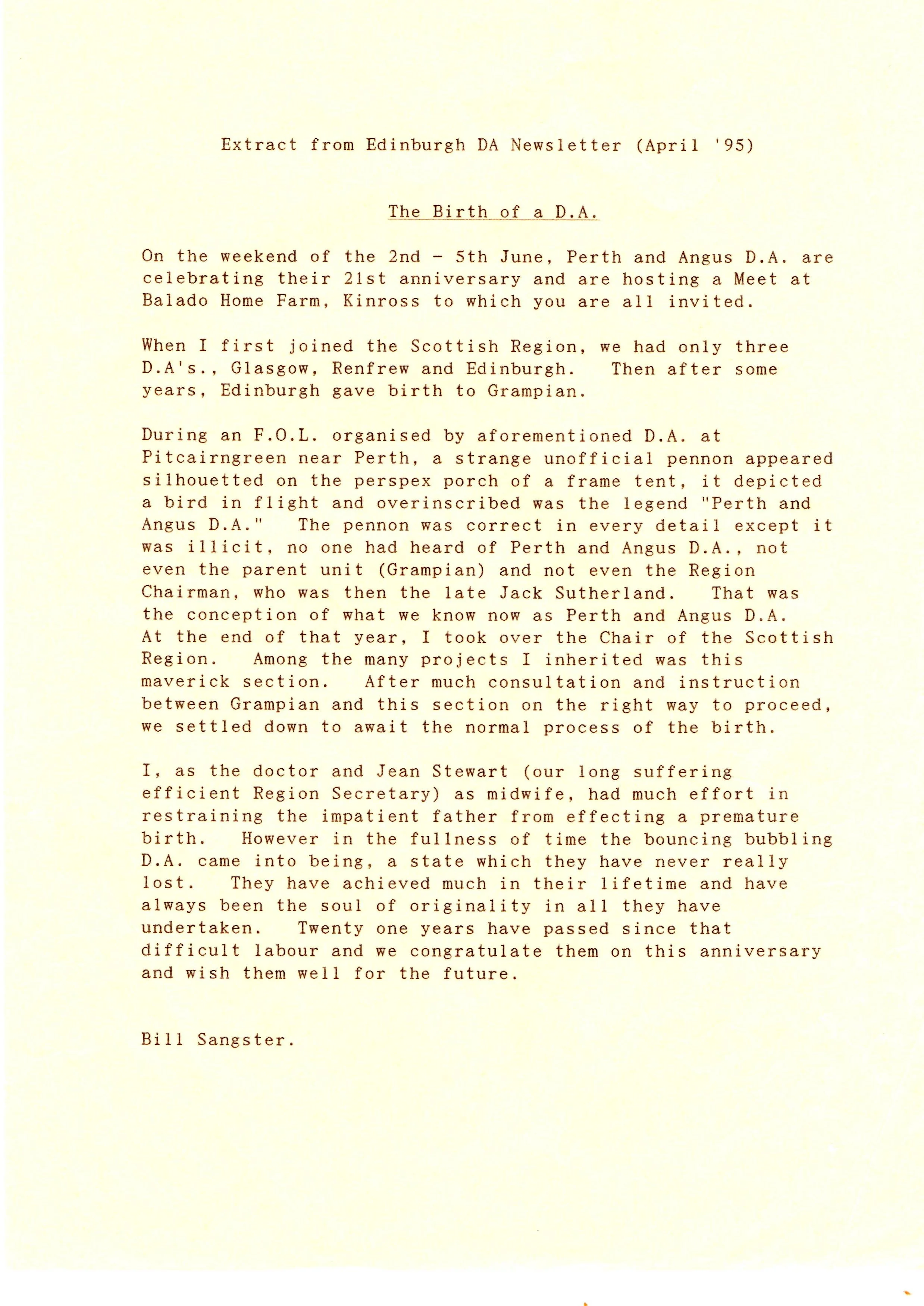 Perth and Angus broke away from Grampian DA in 1974 after it was run as a separate section. The section then achieved D.A. status.